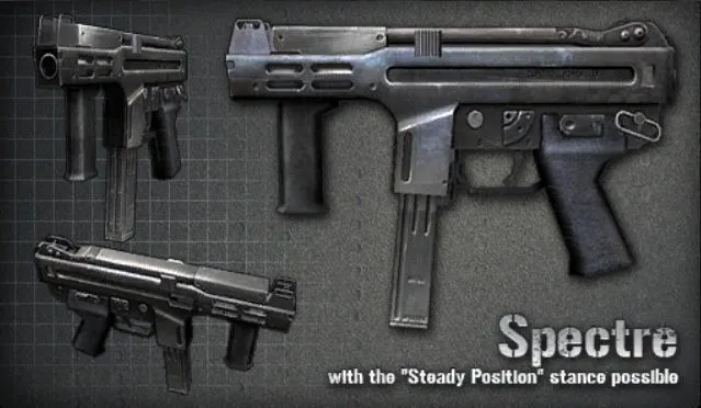 Spectre Ext. - пистолет-пулемет, созданный в Италии. Используется полицейскими спецподразделениями. Обладает небольшими габаритами, высокой скорострельностью и очень прост в использовании. Имеет большой вес, очень удобен для скрытного ношения.