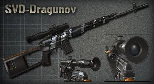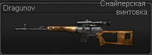 Dragunov - второй представитель советского вооружения. Самозарядная снайперская винтовка, использующая патроны калибра 7,62.