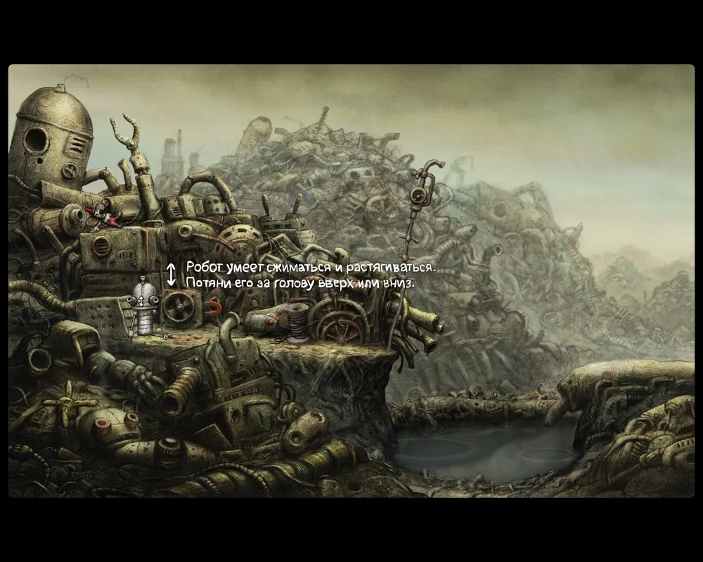 Наш герой умеет оказывать воздействие на предметы лишь в радиусе размаха своих ручонок, точнее пока одной ручки.