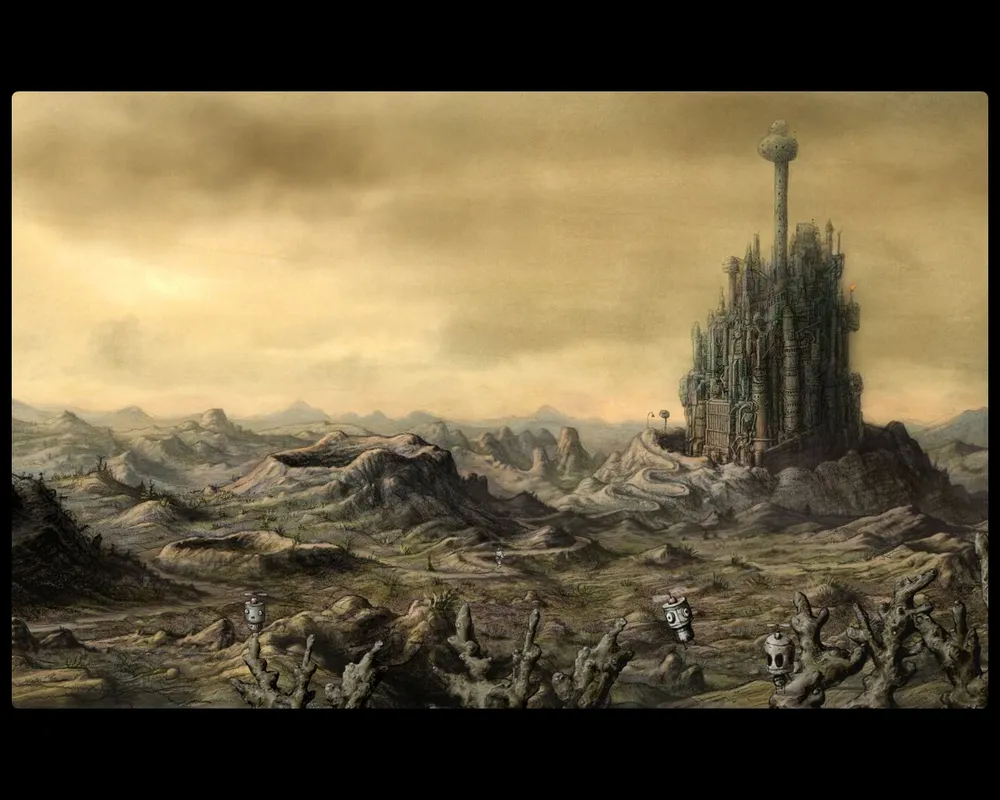 Главное меню встречает нас фантастически-постапокалиптичеким пейзажем с легкой ненавязчивой музычкой и парочкой механических существ.