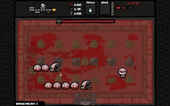 Вы играете Айзеком, голеньким маленьким мальчиком, попавшим в сеть подвалов под его домом после того, какБог приказал матери бедного мальчика убить его. Вас ждёт уровень за уровнем сверху вниз, случайно сгенерированное подземелье, населенное уродливыми бывшими братьями и сестрами Айзека.