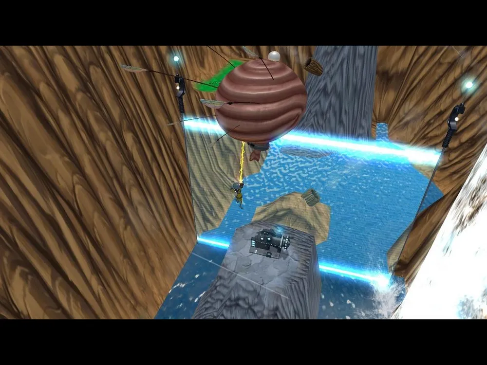 Спустя пять минут после катастрофы жизнь налаживается окончательно: герой находит чудо-девайс, который, что называется, десять в одном. Это «поводок» для безумного розового пудинга (чтобы не убежал куда подальше), с его же помощью позволяется хватать многочисленные объекты на уровнях и каким-нибудь образом их использовать.