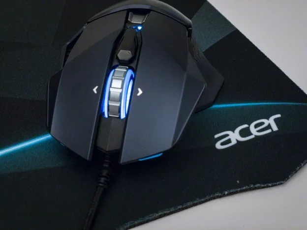 Между кнопками установлено многопозиционное колесо с боковым скроллом и подсветкой. Хоть Predator об этом нигде не пишет, но колесико металлическое. Узнать это удалось простым и надежным способом распознавания металла: если при прикосновении к поверхности она холодит, это металл. Если поверхность тёплая, значит, пластик.