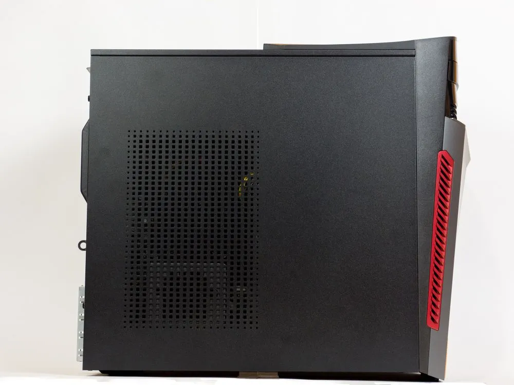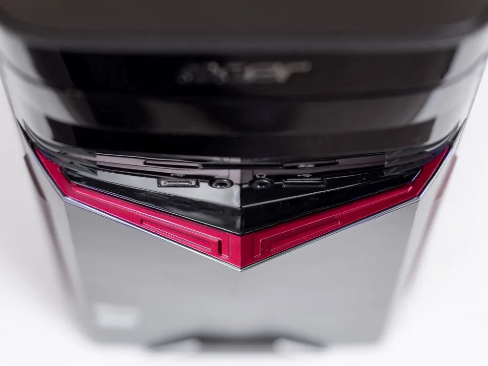 Внешность приятная. Размеры как у офисной машинки, но сразу видно, перед тобою вещь, над которой поработали дизайнеры из геймерской студии с хорошим вкусом, что большая редкость. Корпус не выглядит вызывающе замаскированным под звездолет – просто параллелепипед с выступом-мысом сверху и ручкой для переноски сзади. Выдающийся «мыс» – не только декоративный элемент. В более дорогих конфигурациях внутри него скрывается беспроводная зарядка для смартфонов. У меня сборка недорогая, да и беспроводная зарядка мне ни к чему, так что я не запариваюсь.