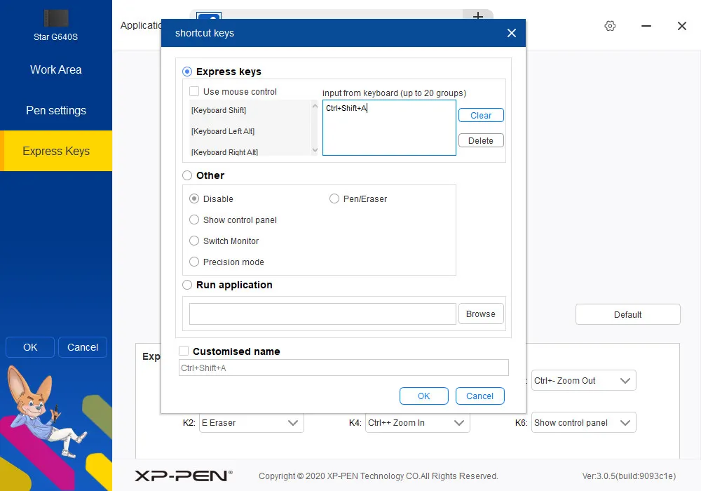 Также кнопки есть и на самом планшете — шесть штук. И у них тоже есть значения по умолчанию (увеличение/уменьшение масштаба, отмена последнего действия и т. п.) Однако все восемь кнопок можно перенастроить так, как захотите — нажатие может работать как комбинация клавиш или кнопок мыши, запускать приложение на выбор или отвечать за одну из «базовых» функций.