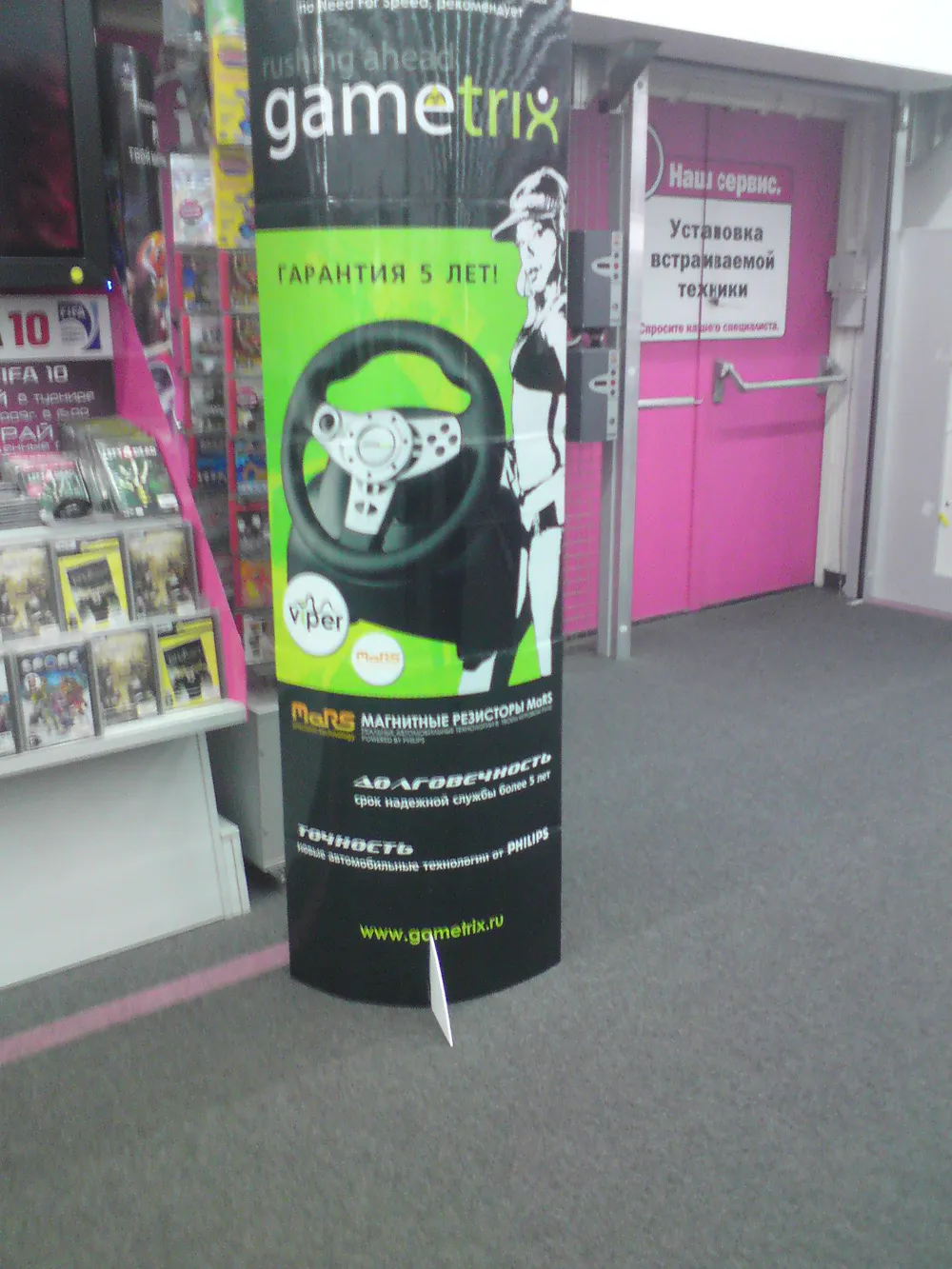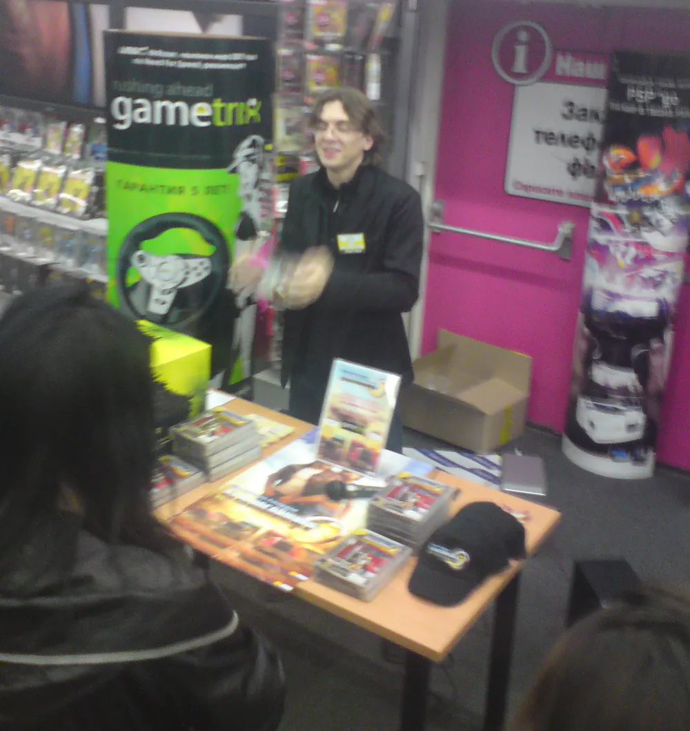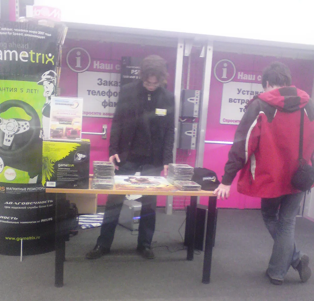 За десять минут до начала продаж поставили картонку с рекламой Gametrix (руля, который был разыгран)…