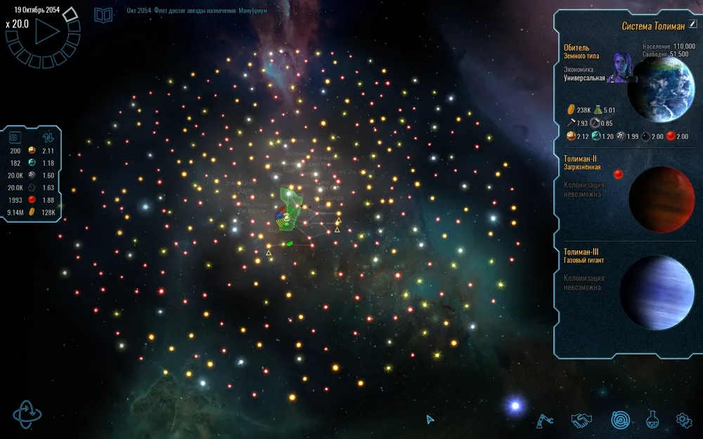 Начинаем мы всего с 1 планеткой земного типа и 1 кораблем разведчиком, и с этого начинается покорение галактики.