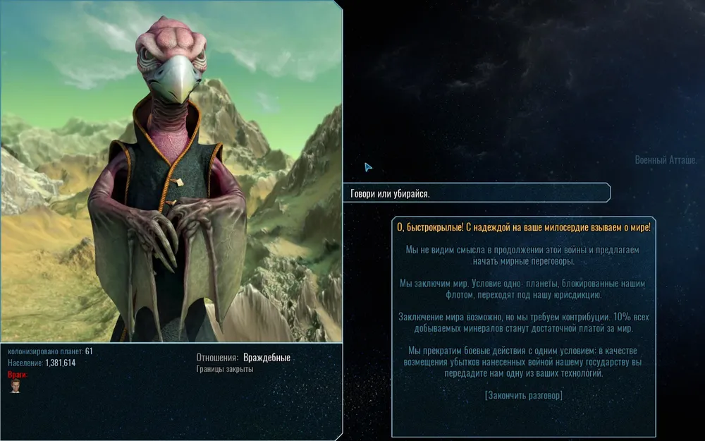 Но не вечно в галактике будут пустые планеты. Рано или поздно вы встретитесь с другими расами. Вы можете заниматься политикой, заключать торговые соглашения, заниматься шпионажем или же воевать.
