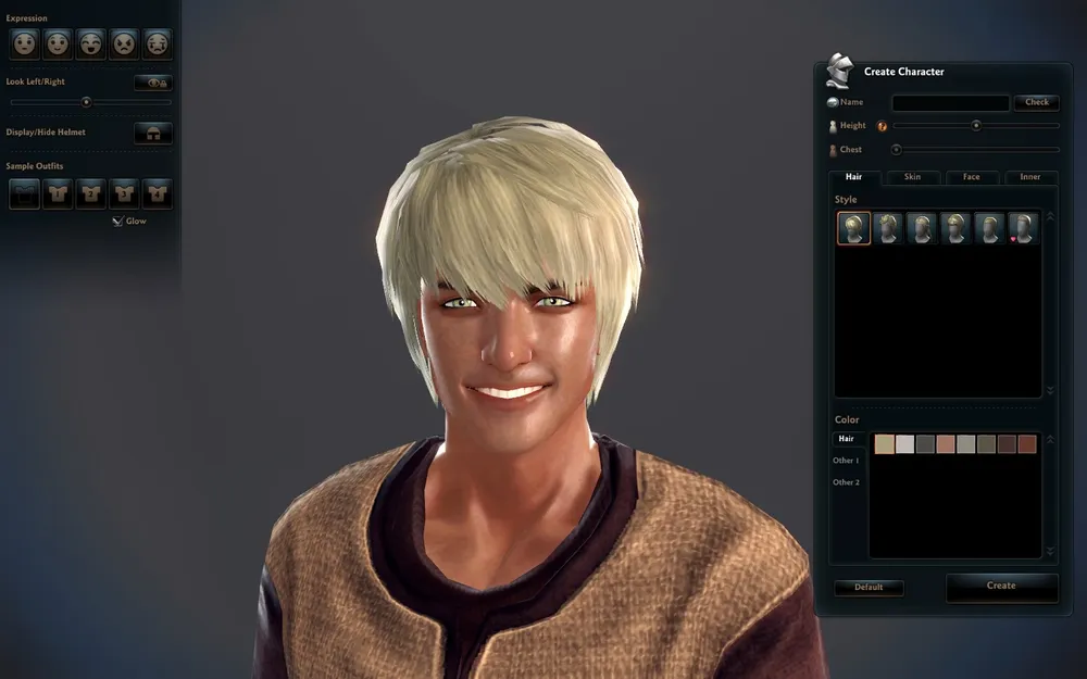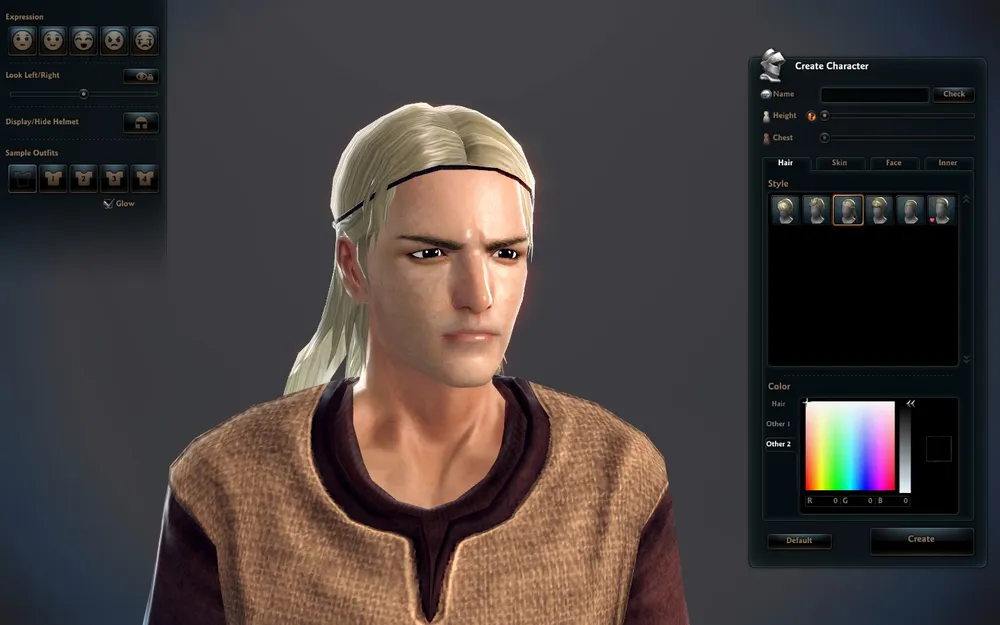 Можно выбрать причёску, выражение лица, рост, цвет кожи\глаз\волос, форму бровей... ну вроде и всё... Короче пока что настройка персонажа с Aion и APB даже рядом не стояла.