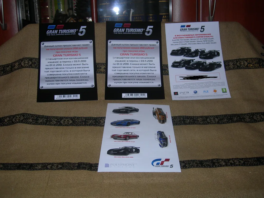 По поводу самого пред .заказа могу сказать только одно- очень хорошо! Выпирающие глянцевые буквы и хорошая комплектация. Ну во первых скидка 200р( их в коробке аж 2), наклейки, постер, код на эксклюзивное дополнение для игры, которое включает в себя 6 автомобилей, а также 3 открытки.