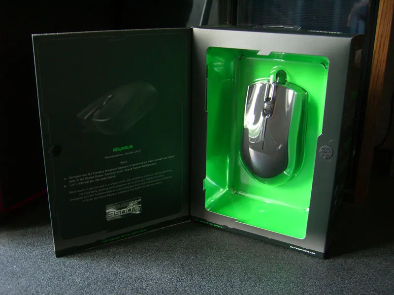 Мышка Razer Abyssus. Те, кто читал хотя бы один обзор по мышам Razer, могут заранее предугадать реакцию: полный восторг. Коробка на липучке, открывается как книжка, позволяя увидеть содержимое. Качество упаковки - на высоте, хочется жамкать до умопомрачения. Сама мышь идет в комплекте с документацией, причем гады производители положили в коробку каталог продукции. Уже влюбилась в геймерские уши с микрофоном и клавиатуру. Отлюбить не получится, уж очень вкусно выглядит. Полиграфия на самом высоком уровне, все в конверте, пафосно сложенное, пахнет вкусной книжкой. И, собственно, виновница торжества, кокетливо подмигивающая голубеньким логосом. Никаких наворотов, очень лаконично. На ощупь очень приятная, шнур длинный, гоняется легко и без проблем. К слову, это первая моя пафосная мышка, и изначально все мыши у меня были из разряда "воткни и юзай". Razer Abyssus в этом плане посложнее в настройке (чур, не глумиться, пишет техническая блондинка). Однако стоит разобраться - и начинается кайф. Колесико крутится ровно настолько, насколько нужно. Рука буквально требует, чтобы ее вернули обратно на мышь. В общем, полная эргономика. Собираюсь опробовать ее в Titan Quest, посмотрим, что получится.