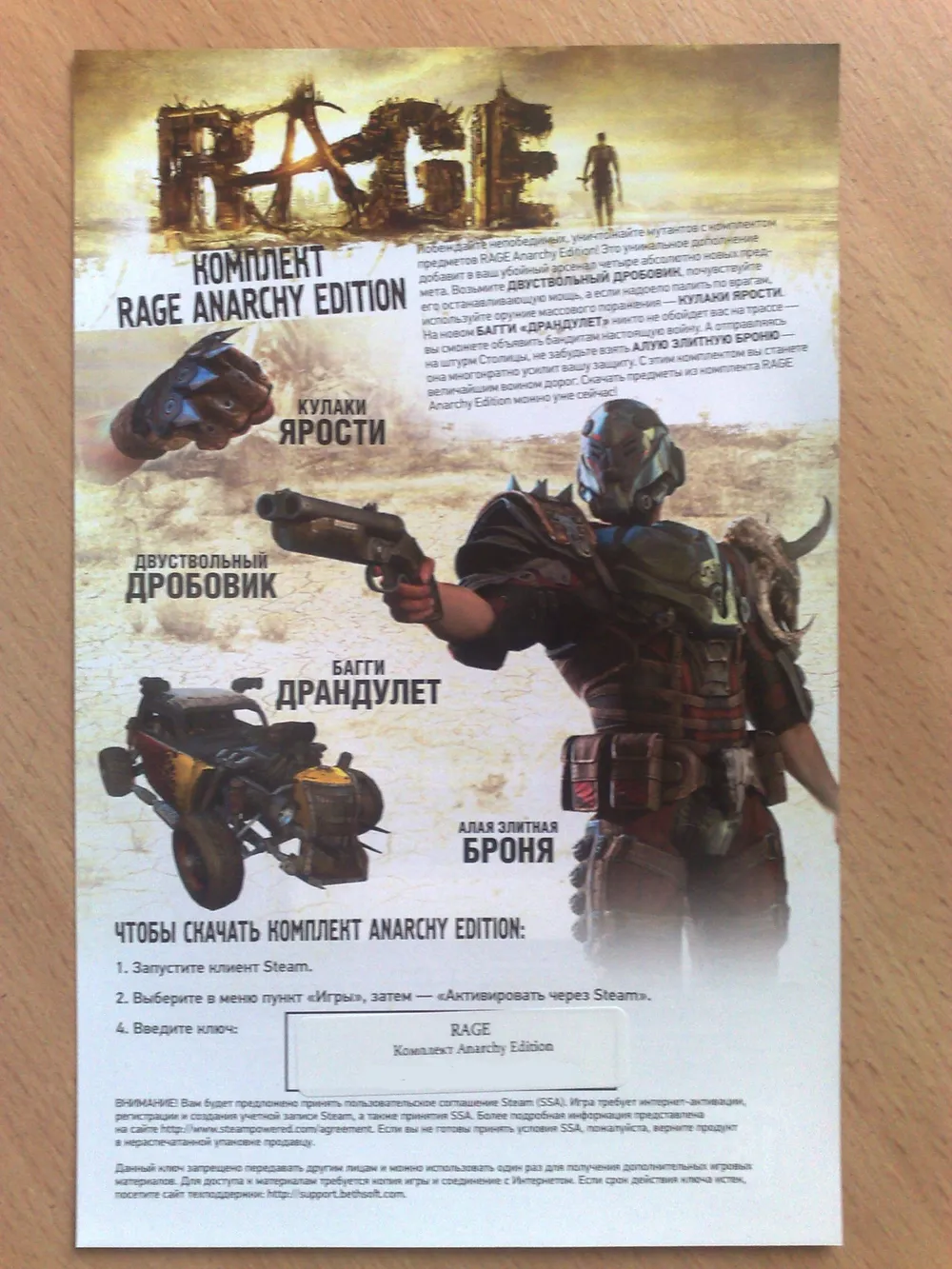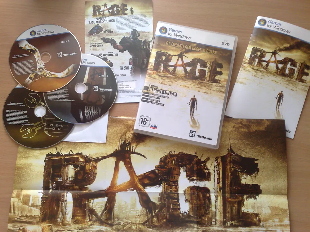 Только сегодня вспомнил, что RAGE наконец-то таки вышел и уже лежит на полках магазинов (ох уж эта работа). Поэтому я не раздумывая с утречка сбегал в ближайший магазин и успел отхватить последний DVD-BOX. Что бы не говорили геймеры про бокс, о том что такое издание денег не стоит, но уже в трёх магазинах моего города осталось по 1-2 копии Anarchy издания, а то и вовсе нет. Так что RAGE Anarchy Edition расходится как горячие пирожки. Ну да ладно, откроем же это издание и посмотрим, что же в нём на самом деле.