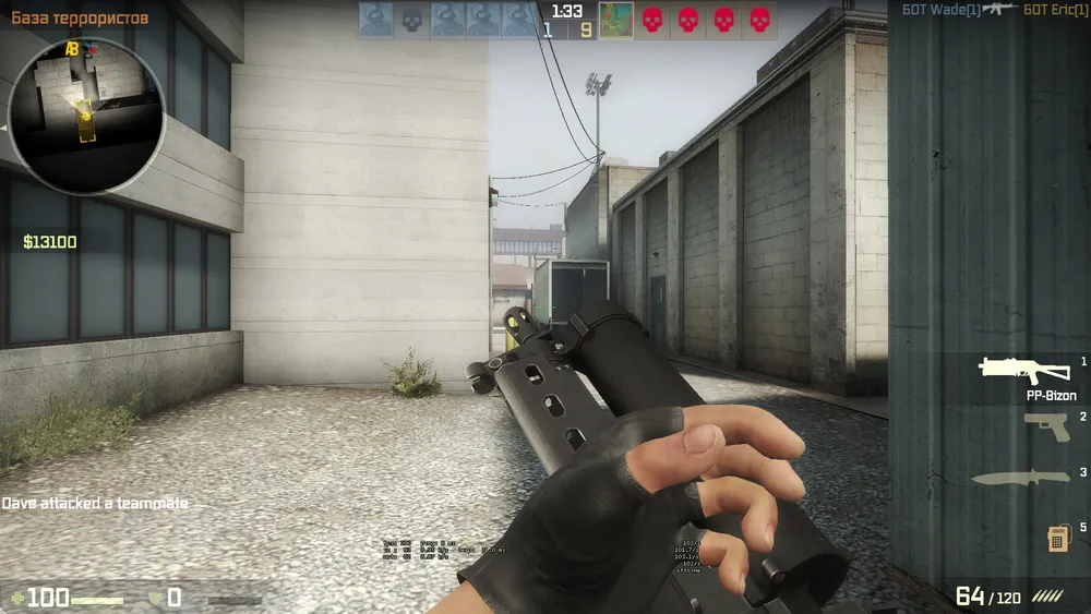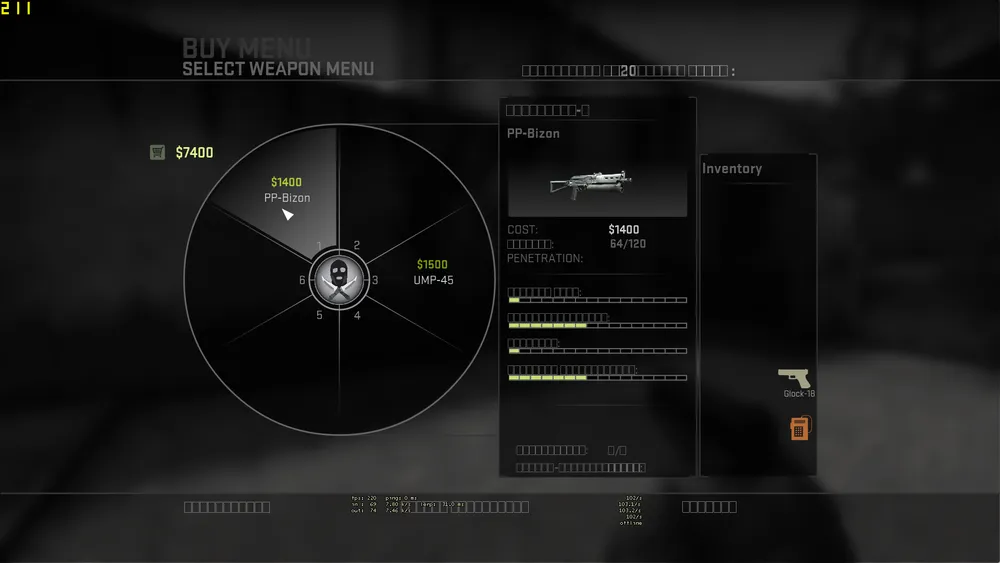 Бизон тоже новое оружие для контр-страйка. Стоит дешевле MP7- 1400$, имеет боезапас 64/120. Понравился больше по сравнению с MP7, из-за кучности наверное. Доступен для покупки только террористам.