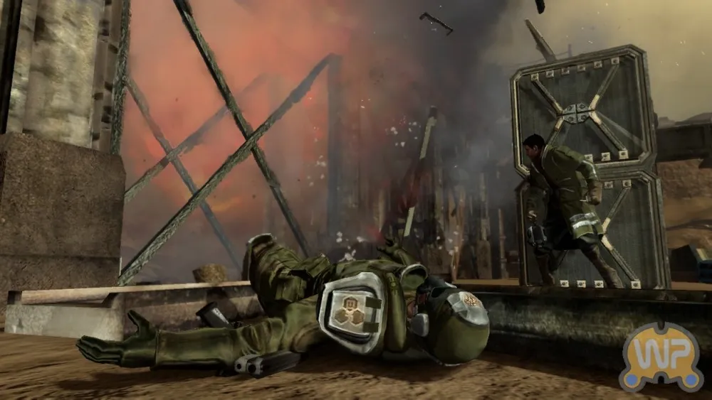 Вот и все, что вам нужно знать о сюжете «Red Faction: Guerilla». Так как повествование настолько скупо на события, что, собственно говоря, можно и вовсе все сюжетные ролики пропустить, ничего при этом не потеряв. Да, есть в игре пара неожиданных сюжетных поворотов, но вряд ли они вызовут у играющих хотя бы пресловутого «Ах!». Не сюжетом гордится игра, а своей возможностью дать игроку побыть разрушителем. Сломать в игре можно практически любое здание - взяли с собой кувалду, радиоуправляемые мины, нанопушку и остальную дребедень из бездонного оружейного шкафа на базе и пошли сносить все, что только можно. Причем все эти разрушения тесно связаны с сюжетными миссиями, которых тут для 10 часов прохождения сюжетной линии всего двадцать. Если вы думали, что все задания будут похожи на «приди-взорви-убеги», то вы в корне не правы: здесь есть и покатушки на больших шагоходах, и оборона зданий, и расстрел войск СОЗ зарядами, испускаемыми спутником, витающим на орбите… В общем, скучать не придется, ибо разнообразность основных миссий снижается разве что к концу игры, но тут же исправляется, давая поездить напоследок на самом мощном танке в игре. Кроме тяжеловооруженной техники, обычных машин здесь тоже хватает - коллекция автомобилей разнится от простых легковых марсианских автомобилей до строительных кранов. Жалко лишь то, что управлять ими на клавиатуре настолько неудобно, что нечаянно переворачиваешь тачку на кочках, которые попадаются на дороге.
