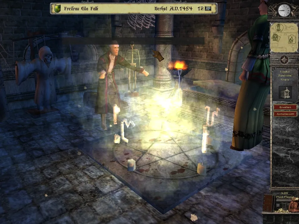 Один из самых уникальных симуляторов средневекового магната Europa 1400: The Guild любим мною по ностальгическим причинам, я прощаю игре очень старую графику и вылеты. В игре модели NPC действительно выглядят страшновато, особенно забавляет глитч у некроманта с работниками-зомби, когда модель NPC, словно тряпка, расширяется на глазах.