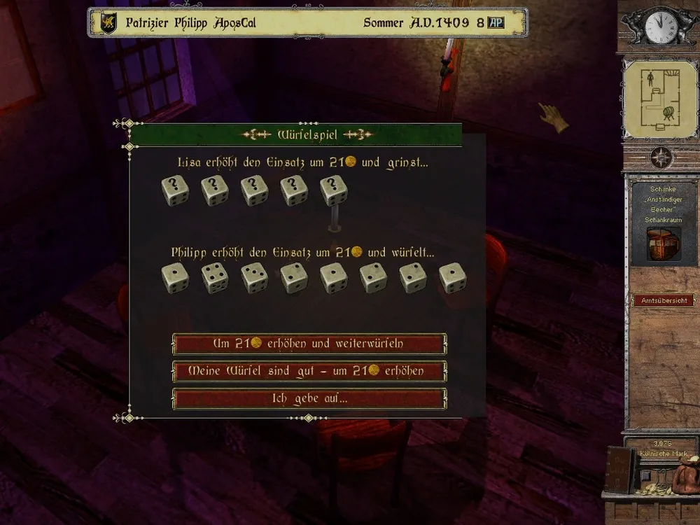 В таверне можно подзаработать на игре в кости, бродяга зарабатывает на актёрских выступлениях за очки действий и в игре в карты.