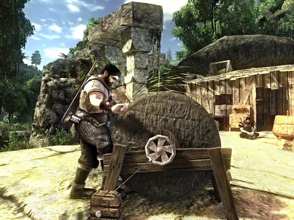 Естественно, вы также можете тренировать свои боевые навыки, такие как сила и ловкость. Впрочем, если в боевых/охотничих навыках все осталось без изменений, то, например, кузнечное дело в Risen визуально лучше реализовано. Соответственно, для того чтобы выковать меч вам потребуется не абы какая, а специальная заготовка (каждому мечу-своя), горнило, наковальня, точильный камень, чан с водой и т.д. Визуально все это проработано на отлично.