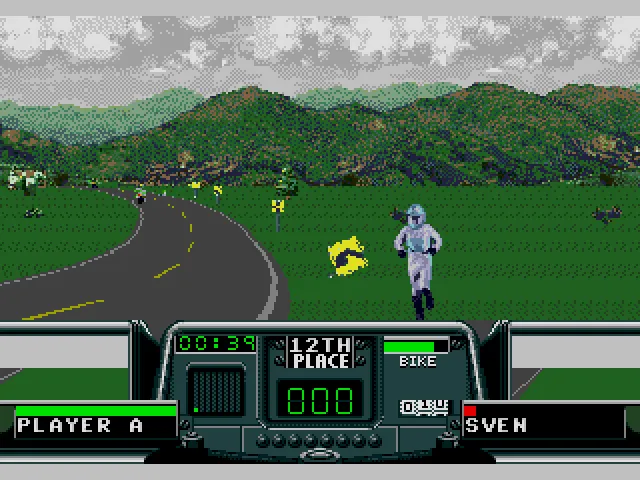 Если вас сбили с мотоцикла, то вам придется бежать до него на своих двоих по дорожному покрытию. Если мотоцикл на противоположной от вас стороне дороги, то пока вы пересекаете дорогу, вас могут сбить встречные машины. После каждого такого столкновения вы будете, как ни в чем не бывало, подниматься на ноги и продолжать свой счастливый бег до своего двухколесного транспортного средства. Так может происходить много раз, прежде чем вы снова заведете мотор своего байка и продолжите гонку. По идее мы должны осторожно пересекать дорогу, пропуская встречные машины. Но в ходе игрового процесса вам на это будет все равно. Таким способом вы быстрее вернетесь в гонку и наверстаете соперников.