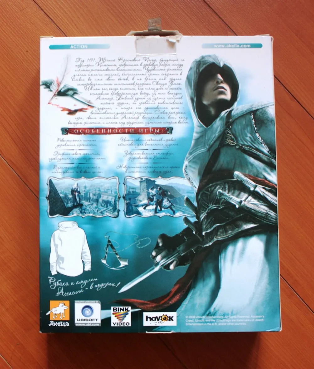 Приветствую! С вами еще один обзор одного из российских коллекционных изданий. На этот раз объект очень известный. Более того, я бы назвал его неофициальным символом текущего поколения игр – это Assassins Creed. Напомню, что релиз игры на ПК был довольно тяжелым для издателя – за месяц до релиза в сеть утекла английская бета-версия игры. Она была непроходима, но то полбеды. Через день после английской, в сети появилась полностью русская бета-версия игры. Она была проходима, и единственной проблемой был вылет на рабочий стол каждый час игры. К чему я все это говорю? К тому, что я после утечки написал на одном из форумов следующий пост (дословно):