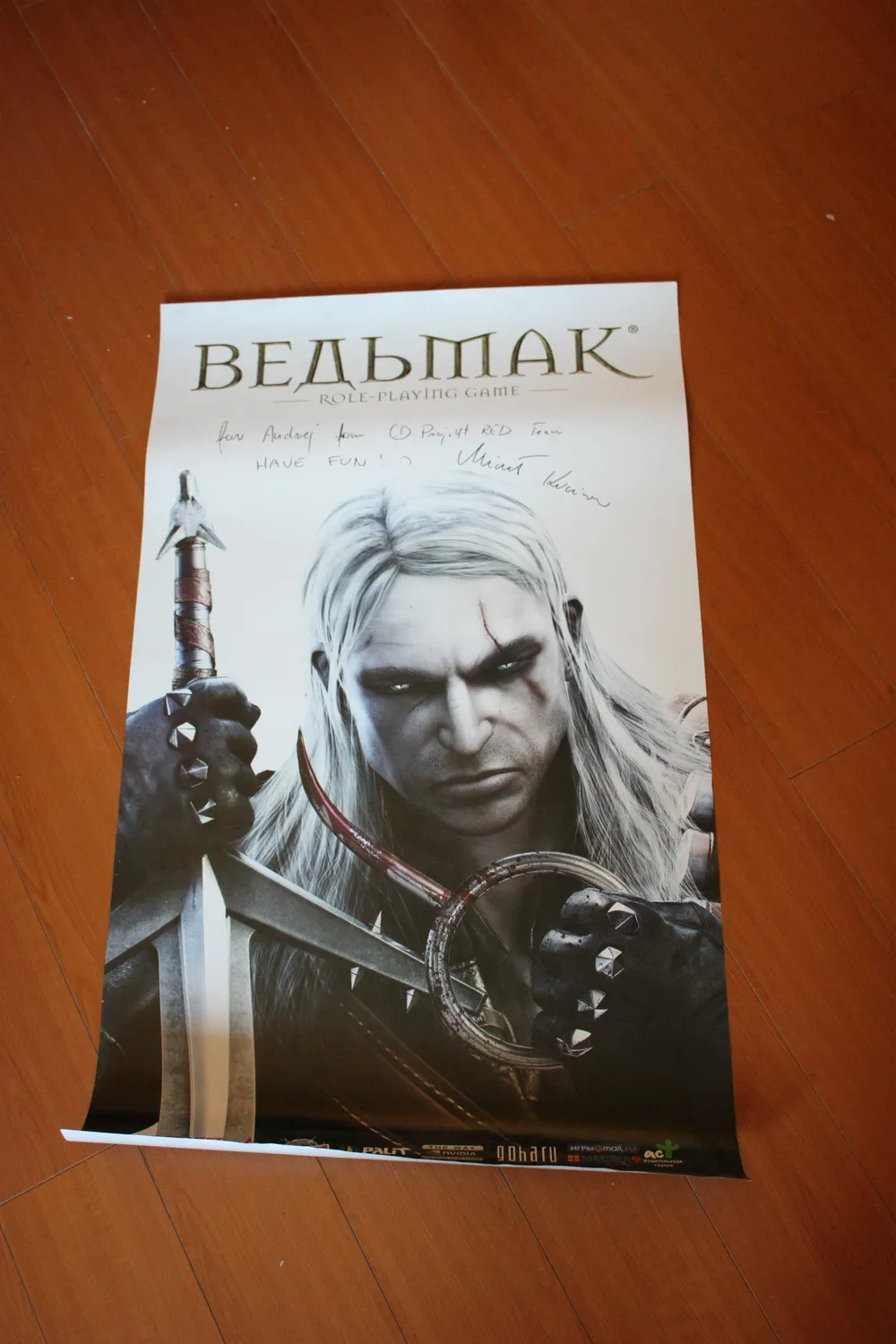 Прежде всего все покупатели игры могли получить плакат (формата А1) с автографом разработчика из группы СD Project RED, Михалом Кичински. Мой плакат вот: