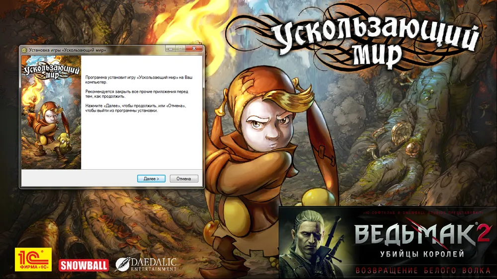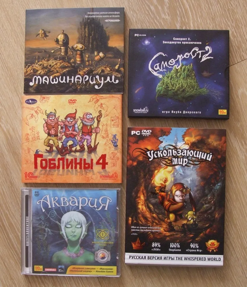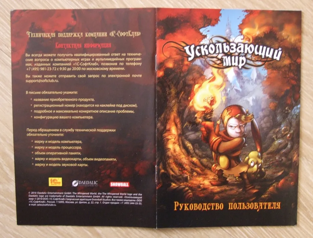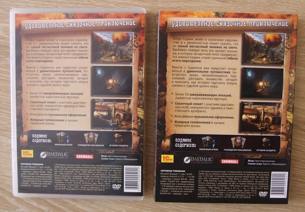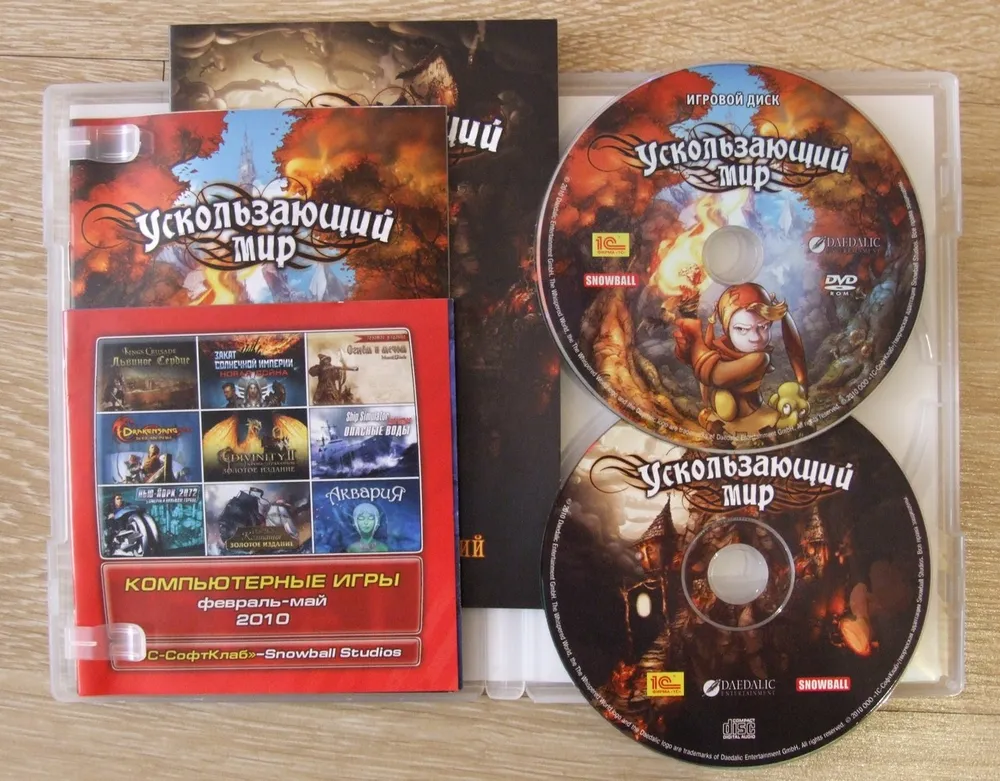 — DVD-диск с игрой, как ни странно. 2 гигабайта занимает дистрибутив и еще пол-гигабайта — папка «Demos» — демо-версии «Эадора», «Машинариума», «Алхимии» и ролики игр от «1С-Snowball».