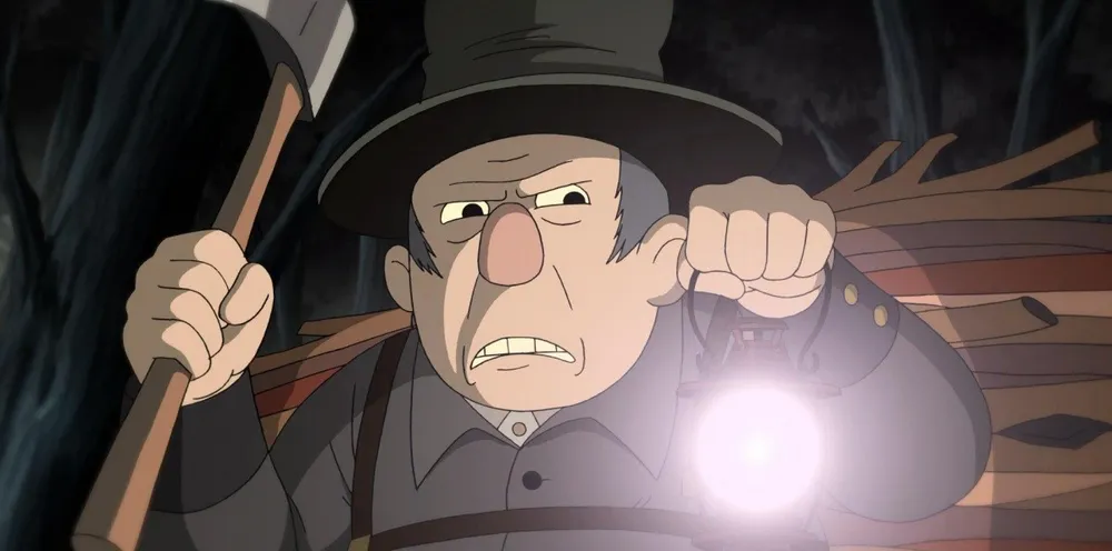 Визуально «По ту сторону изгороди» напоминает упомянутое «Время приключений», которую бы решил переделать Миядзаки. То есть главные герои все выглядят как люди, а по второстепенным персонажам можно писать диссертацию о количестве наследственных мутаций в семейном генеалогическом древе. Некоторые герои вообще, на мой взгляд, являются данью уважения к знаменитому японскому аниматору, в позапрошлом году навсегда оставившим свою любимую работу ради спокойной старости.