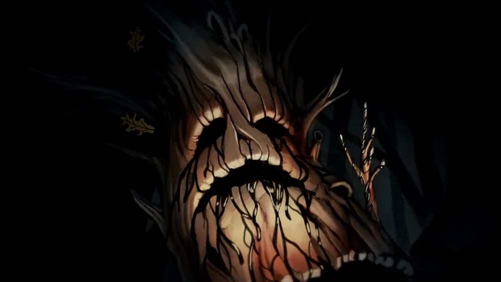Итак, что же в этом сериале хорошего. Все. Изначально сюжет вам, мне кажется, совсем не понравится. Но пересильте себя и продолжите смотреть. У любого события в этом мультфильме есть двойное дно, которое будет себя медленно раскрывать, и смышленый и внимательный зритель словит по венам много настоящего чистого кайфа, бесплатно, без отходняка и без проблем с законом. Сценарий плавно течет, проводя героев между очень странными местами и знакомя с совсем уж необычными, нереальными персонажами, которые только поначалу выглядят всего лишь набором карикатур. Как я уже сказал, себя они проявят позже. Даже этот мрачный лесник-дровосек, который рубит на масло деревья с перекошенными лицами на стволах. Кажется, что тут вообще нет ничего, что было бы просто так. И эта говорящая птичка, крутящаяся поблизости от главных героев, – она очень важная часть запутанной в лесных чащобах истории.