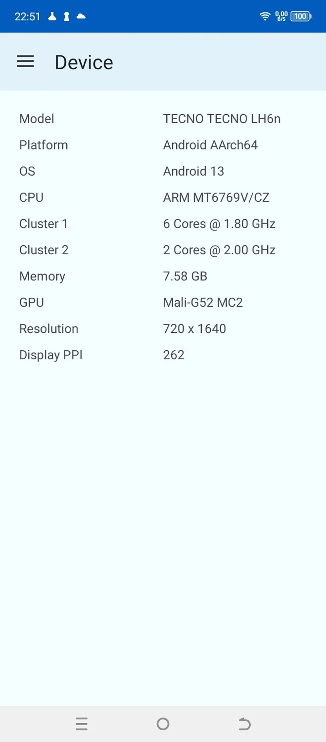В смартфоне TECNO Pova Neo 3 установлен 8-ми ядерный процессор MediaTek Helio G85, 8 Гб оперативной памяти, 128 Гб встроенной памяти (объём можно увеличить до 256). Операционная система Android 13 — стандартная и полностью поддерживает приложения Google, в том числе и магазин Google Play, так что можно не беспокоиться о совместимости приложений.