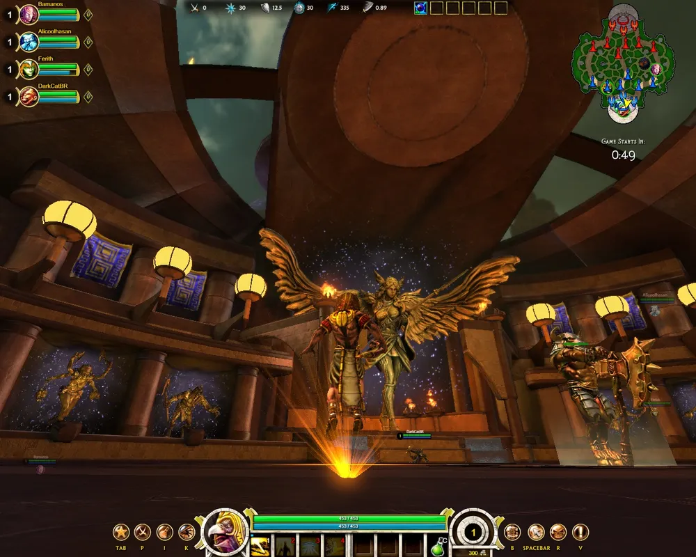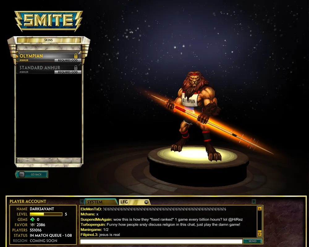 Ладно, про вид от третьего лица рассказал. Теперь про саму концепцию игры. В игре есть много-много разных героев, и собственно на мастерстве управления любимыми героями игра и строится. У каждого героя есть класс и способ ведения боя, все вроде достаточно сбалансированы и имеют сильные и слабые стороны. Сами герои являются, простите за тафтологию, героями мифов разных народов — то есть тут есть всякие египетские, индийские, китайские и еще всякие разные боги и мифические твари, а еще недавно добавили героя Купидона, ужасно приторного, сюсюкательного и дебильного, который, как мне кажется, вообще не к месту. Вообще, вся сама концепция игры представляет собой тоже неоднозначную солянку из героев разных легенд. Вдобавок к этому, например, какие-то герои смотрятся круто, легендарно и пафосно (как классические египетские боги - или кто они там - Ра и Анубис), а какие-то забавно и весело; вышеупомянутый Купидон выглядит просто стрёмно и нелепо. Масла в огонь подливают не слишком лорные скины вроде Олимпийца (сам лев в дефолтном скине выглядит пафосно и угрожающе) или Ковбойши, и становится вообще непонятно, какую цель преследовали разработчики — то ли сделать весёлый и оригинальный экшон про обезьянок, ковбойш и купидонов, то ли надуманную и эпичную MOBA со всякими там Зевсами и прочими разношерстными тварями. То есть как-то неоднозначно; по крайней мере, органичным сеттинг тшоы я бы точно не назвал, хотя, например, HUD и всякие менюшки смотрятся более стильно, чем в том же Tribes: Ascend.