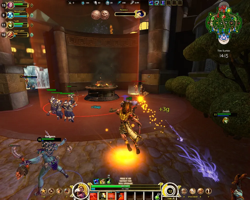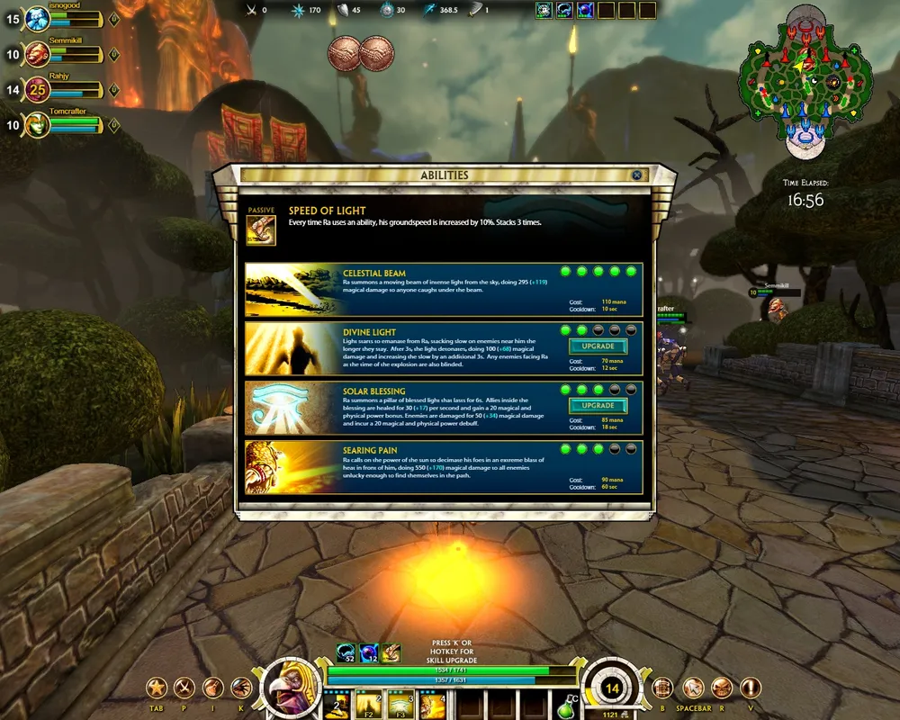 То есть соль в том, что от третьего лица как-то непривычно дубасить мобов, которые долго не умирают, а далеко топать от респауна к центру боевых действий вовсе не особо интересно. Конечно, есть и положительные стороны TPS — например, у героя-обезьяны есть эффектный прыжок, когда камера вместе с персонажем взмывает вверх, а потом резко вниз, а-ля Prototype - выглядит, то есть, круто, а ловко уворачиваться от солнечных лучей Ра само по себе круто и вообще. Но в общем выглядит всё это неоднозначно, и я даже не знаю, как это прокомментировать. Есть, конечно, что-то в этом, и смотрится гораздо лучше какого-нибудь Demigod – но непривычно, что уж говорить.