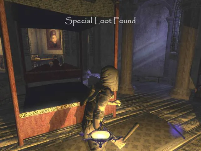 Местный геймплей, если вы еще не поняли, целиком и полностью посвящен воровству. По ходу пьесы Гаррет тащит с собой все, что плохо лежит: золотые подсвечники, колье, драгоценные камни... Он не гнушается избиением женщин и обиранием спящих, он обладает тяжелым циничным чувством юмора, а его система ценностей содержит только один пункт — золото. Рядом с Гарретом все остальные антигерои, включая тупоголового Эша из Manhunt, меркнут и кажутся воплощением гуманности. Каждая миссия имеет, как правило, некую главную цель (обычно это кража особо ценного артефакта, за который на местном рынке предлагают крупную сумму) и целый перечень подзадач. Скажем, задание не будет считаться выполненным, если вы не прихватите с собой как минимум 40% всех ценностей на уровне. Каково?
