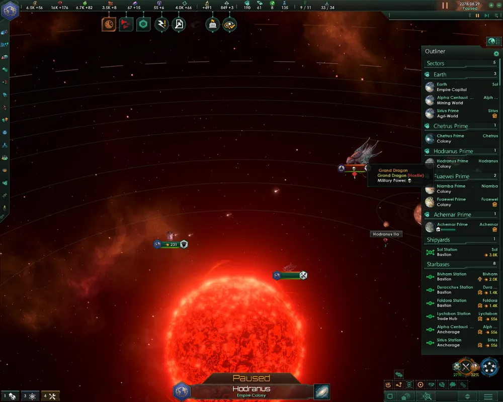 Хотя можно расширяться и без колоний. Просто строите на орбите звезды станцию, которая требует гораздо меньше «Административной эффективности» и она уже будет контролировать орбитальную добычу и исследования. Но тут уже становится вопрос — насколько выгодно вкладываться в станции, ведь планета чаще может поставить гораздо больше материалов и технологического вклада. Плюс на станции тоже есть лимит…