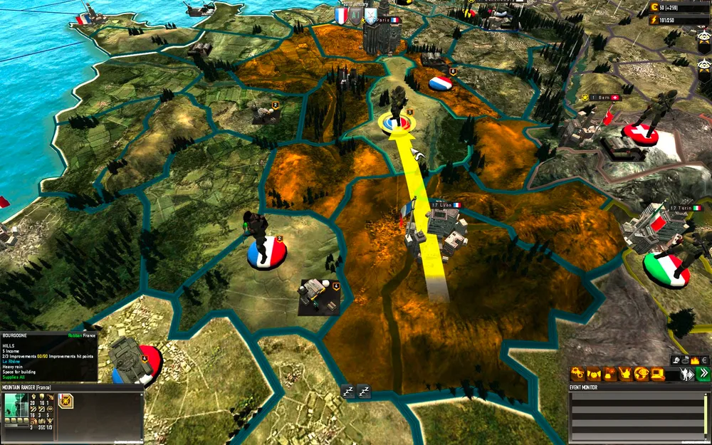 В эстетическом плане игра исполнена аккуратно, симпатично и стильно. Стратегическое поле представляет из себя реальную карту Европы с текстурами а-ля снимки со спутника с гексами в форме реальных областей стран, поле боя же генерируется автоматически каждый раз с разным ландшафтом. Все ходы и доступные зоны наглядно иллюстрируются и радуют глаз :). К слову ландшафт местности играет важную роль в битвах, например пехоте нужны укрытия, а танкам открытое пространство, динамическая погода и время суток также вносят свои коррективы: например дождь мешает авиации, а пылевая буря уменьшает видимость соответственно замедляет передвижение.