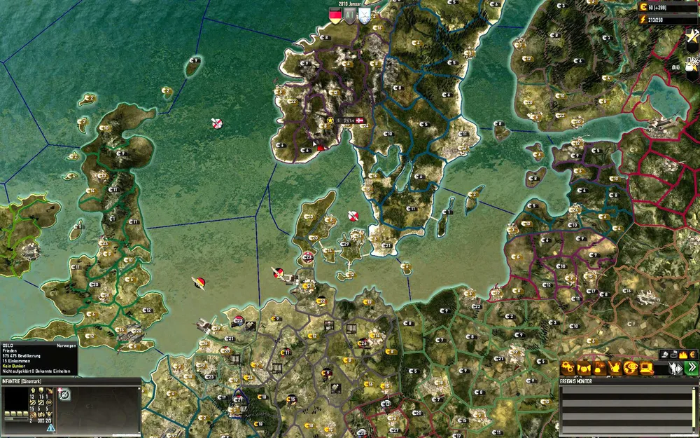 Фактически в игре представлены два режима – стратегический (с дипломатией, строительством, экономикой) и тактический (непосредственно ведение боевых действий). В игре представлена интересная система дипломатии, с переговорами, договорами и союзами которые действительно играют важную роль в жизни страны. Также представлены шпионы, спецназ и прочие секретные агенты что открывает простор для грязных приемчиков типа саботажа. Можно к примеру взорвать собственное здание, и обвинить в этом какую-то неугодную страну чтобы был повод начать войну и не потерять лояльность собственного населения или внедрить шпиона на вражескую территорию чтобы украсть последние научные разработки. Таких примеров много, и все они добавляют «взрослую» стратегическую глубину игре. В тактическом режиме на поле боя важно грамотно использовать ключевые особенности своих и чужих юнитов, электронный мониторинг, перекрестный огонь, дежурный обстрел и внезапный штурм. Есть где душе разгуляться :)