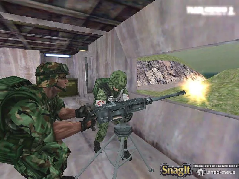 Вооружен гранатометом типа “муха” и винчестером, гранатомет очень похож на стандартный Half-Life`овский, носится за спиной, пуск производится с плеча, но есть одно отличие — бьет он на определенною дистанцию ( 15 метров) и только если стать на колено, так же если во время пуска ракеты стать за пускающем — струя выпускаемого пламени сделает из вас жаркое.