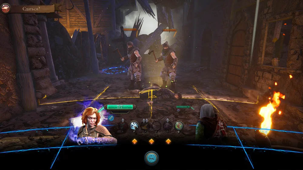 Бои в игре пошаговые. Никакой отдельной инициативы нет, кто напал, тот и ходит первым, в дальнейшем ходы чередуются. Бои ведутся на площадке 4х4 и 4х5 клеток. Первые 2 линии предназначены для отряда, оставшиеся – для врагов.