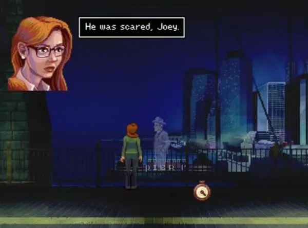 Кроме того, Джоуи плохо ориентируется в современном мире. Поэтому именно у Розанжелы есть не только доступ в интернет, но и возможность сопоставлять «улики». Для этого есть отдельное меню, куда заносятся все важные темы для разговоров и описания находок. И выбрав два пункта можно заставить Розу подумать, а не связаны ли они. Если связь есть (точнее если Роза её увидит), то результат может добавиться в меню в качестве ещё одной информационной пометки.