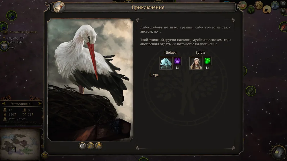 Случайно генерируются не только ресурсы, события и враги, но также «данжи». В этой игре под ними понимаю точки интереса, куда можно зайти, чтобы поучаствовать в случайном событии или бою. Если зайти в такой «данж», но отказаться от боя или исследования события, то он исчезнет, однако игра генерирует их с завидным постоянством, так что не стоит переживать, если вы решили избежать заведомо смертельной драки.