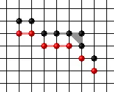 - Два игрока (красные и черные) ходят по очереди. При каждом ходе на поле ставиться одна точка.