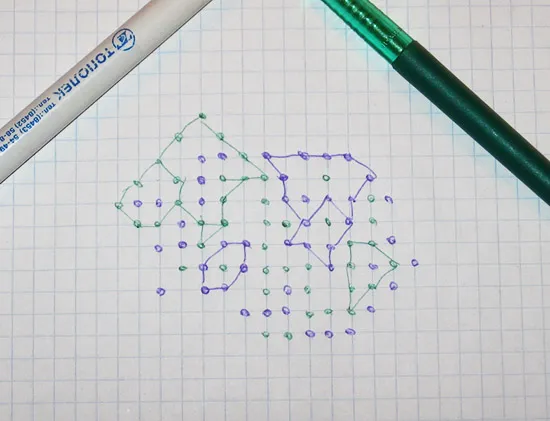 C чего начинается настольная игра? Вы думаете с поля? С фишек? С костей? Нет, вы ошибаетесь! Хорошая игра - это прежде всего хорошая идея, а реализация уж сама по себе придумается.[cut] Возьмем к примеру мои любимые точки, ведь них можно играть как дома\в школе\на работе\везде где есть бумага. Но что-то я забегаю вперед, давайте я вам немного про них расскажу.