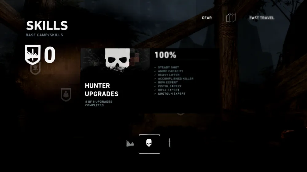 Система развития Лары предлагает нам на выбор 3 набора навыков, почти все из которых будут полезны по ходу игры: «Мастерство», «Выживание» и «Боец». Первая группа отвечает за умение охотиться, находить тайники и артефакты, а также собирать патроны и детали для оружия с поверженных врагов или животных. Второй набор содержит различные улучшения для стрелкового оружия. Его последние навыки позволяют проводить особые добивания противников на близком расстоянии. Спорное достоинство для тех, кому проще расстреливать всех издали из-за укрытий, но выглядит очень эффектно. Третья ветка отвечает за умения ближнего боя.
