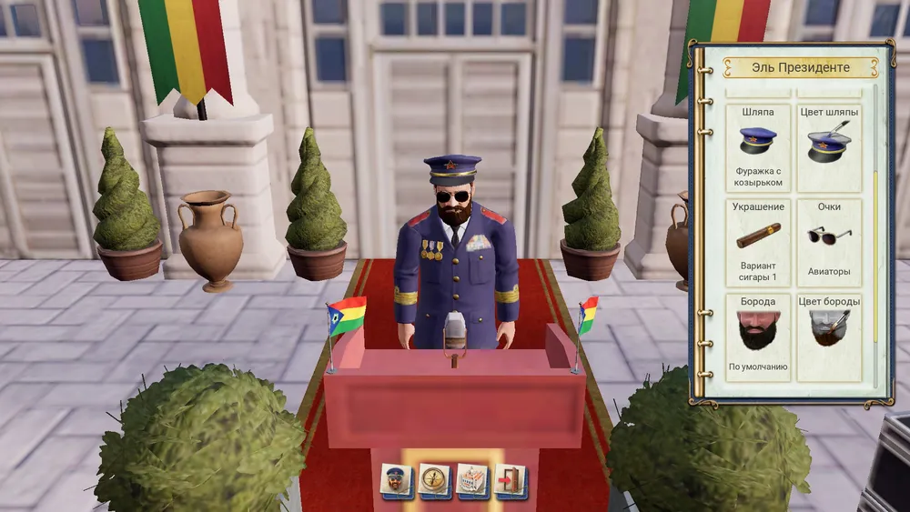 В игре даже присутствует кастомизация вашего аватара. Одежда, аксессуары, внешность. Можно даже сделать Эль Президенте женщиной, если вы решили примерить юбку королевы Дейдраны. И всё это вы можете увидеть прямо в игре, например когда будете произносить предвыборную речь или посещать театр. Причём даже эти действия являются частью геймплея — «выход в свет» и правильный выбор пунктов предвыборной программы поднимает уровень одобрения.