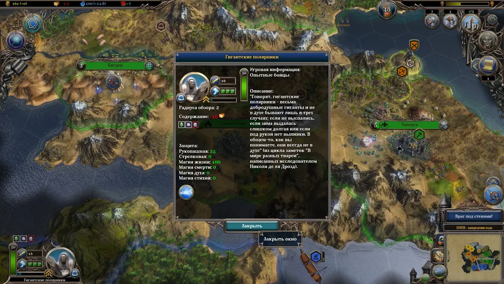 Сильно изменился и смысл исследований заклинаний. Теперь это не хаотичное месиво, в котором следует копаться, а ступенчатое древо, состоящее из трёх веток, в каждой из которых нужно исследовать несколько заклинаний более низкого порядка, чтобы шагнуть выше. А самое интересное, что дарят заклинания, – это конечно качественный подход к изменению рельефа местности и его эко-систем. Опустить половину пригорода врага в пучины морские или отправить гекс с ценным ресурсом на вершину горы – это новый вид борьбы и повышения собственного благосостояния. Превращаешь земли противника в мёртвые пустоши, и вот он уже не может прокормить собственную армию. Зажали тебя враги несметные на конце полуострова – отступление в море есмь смерть, но вот уже суша пред тобой, а после – нет ни суши, по которой ты шёл, ни врагов, которые пытались тебя преследовать по этой суше. Землю надо за собой обратно опускать, если вы понимаете юмор ситуации.