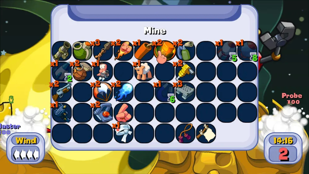 Еще один минус - у каждого игрока может быть не более 4 червей на поле боя. Ограничение понятно при игре на 4 человек, но для игры вдвоем это слишком мало - сбрасывая с обрыва в первом же ходу одного вашего червя, соперник получает просто огромное преимущество.