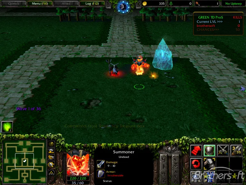 Тоже знакомый многим жанр. Есть замок(монумент, замороженный Артес или что-нибудь ещё). Его надо защитить от идущих по дороге мобов, строя различные пушки по обочинам и ловушки на дороге (Fire trap). Также бывают монстры «иммуны», у которых иммунитет от той, или другой пушки. И наконец-то боссы. Они идут на последних волнах. Как правило это очень сильные мобы, и чтобы уничтожить их, нужно, до их волны, расстроится.