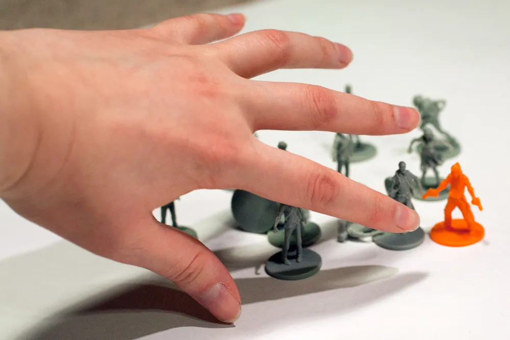 Огнестрельное оружие сразу кажется выгоднее - можно не подпускать этих тварей к себе! Подвох в том, что стреляете вы не по целям, а по зоне. Вы бросили кубик, попали в кого-то и… по правилам первые пули достаются выжившим, которые были зоне обстрела, а верткие зомби-бегуны умирают последними. Прикрывать попавшего в беду товарища издалека можно только из снайперки. В таких условиях бензопила предстает оружием возмездия. Да она просто дарует неуязвимость!