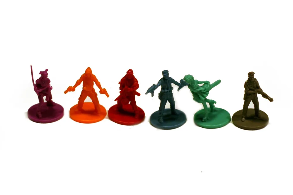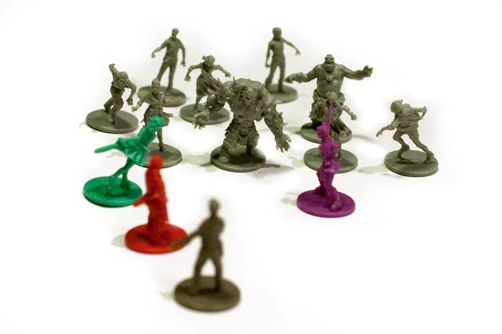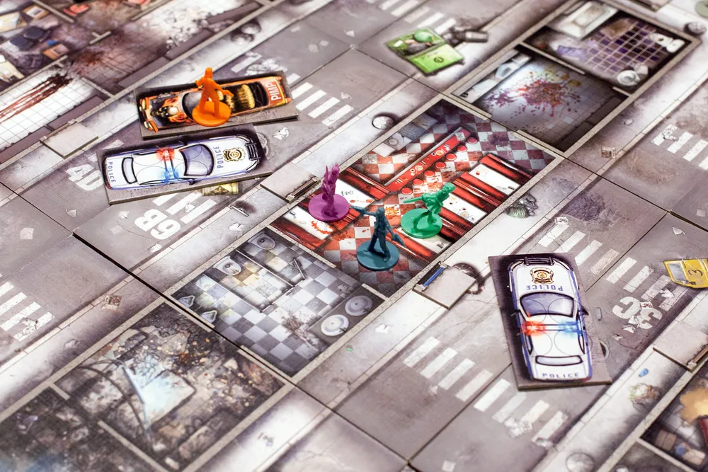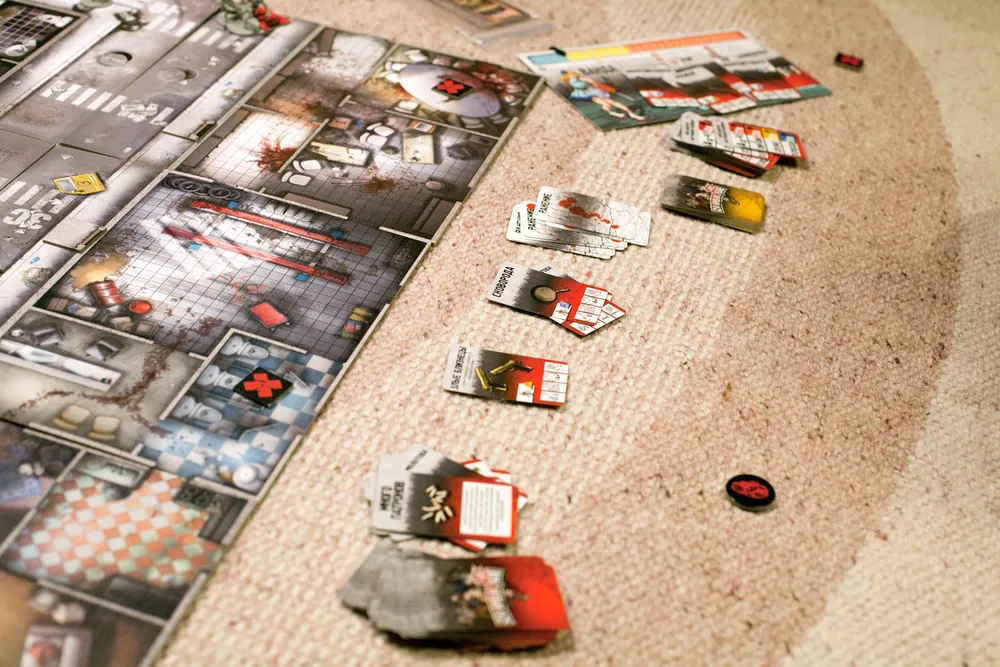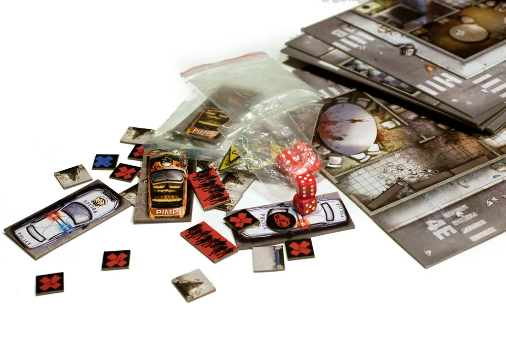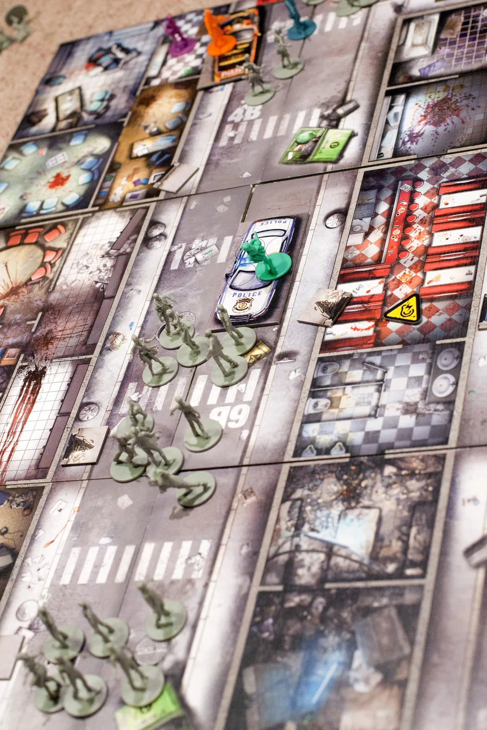 На выбор предлагается шесть персонажей («выживших»), и играть лучше всего именно вшестером. Если вас меньше - можно брать по несколько персонажей, но так неинтересно. Постоянного игровой карты нет, вы выбираете одну из десяти миссий и собираете игровое поле согласно схеме (включая расстановку дверей и мест появления зомби). В каждой миссии своя цель – где-то нужно добраться из точки А в точку Б, где-то нужно собирать припасы, где-то прорываться к выходу, а где-то все вместе. В последних миссиях более запутанные правила и условия победы, есть даже своеобразный tower defence.