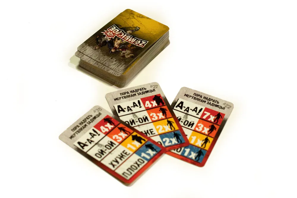 - 110 игральных карт разного типа (карты вещей и карты зомби)
