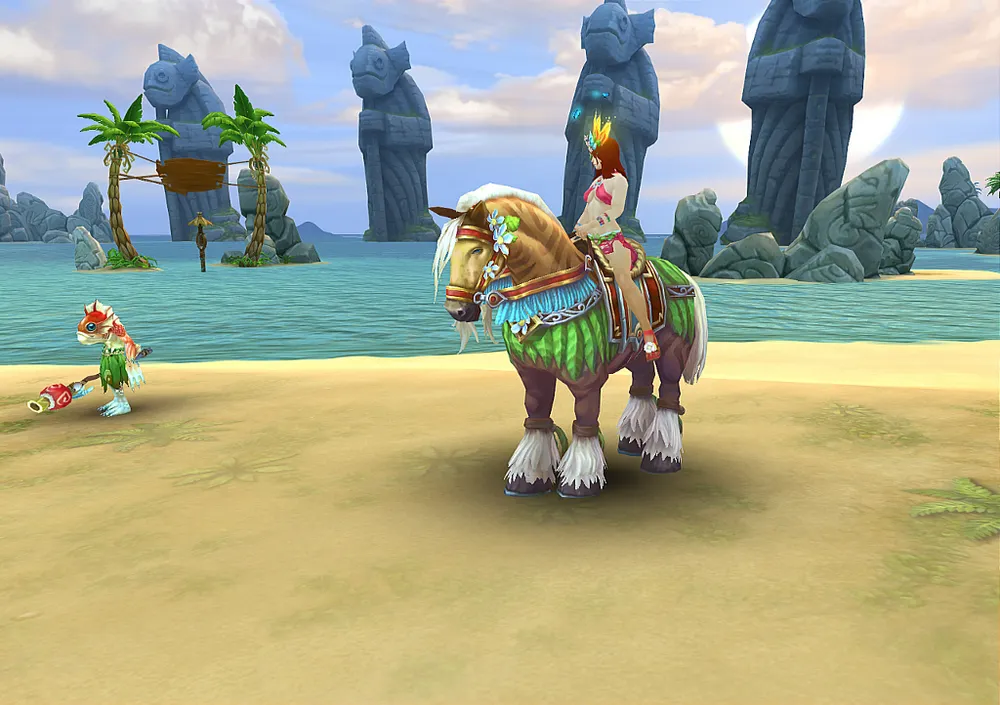 Новая локация доступна не только самым большим, но и свежепоявившимся персонажам. Для входа достаточно купить билетик либо в лавке редкостей либо у NPC за бесполезные монетки, что падают с каждого третьего монстра уже год. Сам Атолл представляет из себя зону отдыха, на которой все ходят в труселях да купальниках, запрещено атаковать друг друга и можно только петь, бегать, пить и развлекаться. Из ценных наград у нас есть другиме монетки в огромных количествах, бонусный опыт (полезен всем, даже тем кто на левелкапе), самый обычный скакун (бесполезен без кормёжки кристаллами) необычной арбузной раскраски и эм... развлечения.