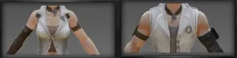 3. Изысканный японский костюм на женский и мужской скины. Японский костюм, подчеркивающий индивидуальность. Белая безрукавка, бардовые с черным брюки и черные перчатки дополняют образ. На пояс можно повесить устройства и тактические усовершенствования.